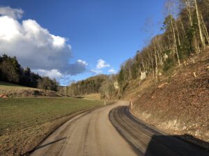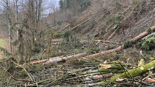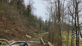 Entlang der Flaachtalstrasse wurde zur Hangentlastung ein Sicherheitsholzschlag durchgeführt.