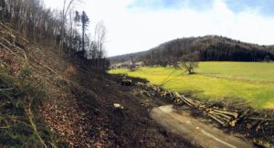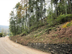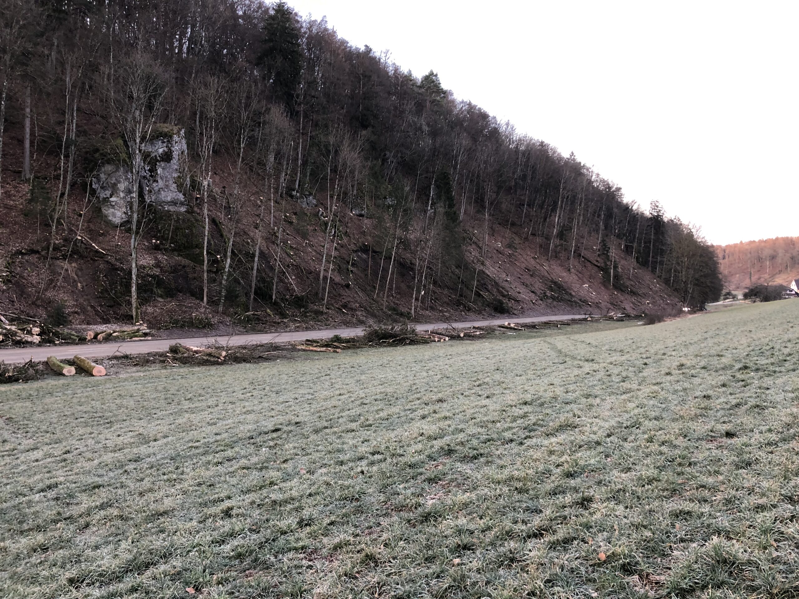 Entlang der gesamten Freudentalstrasse in Schaffhausen wurde zur Sicherung der Straße ein Sicherheitsholzschlag durchgeführt.