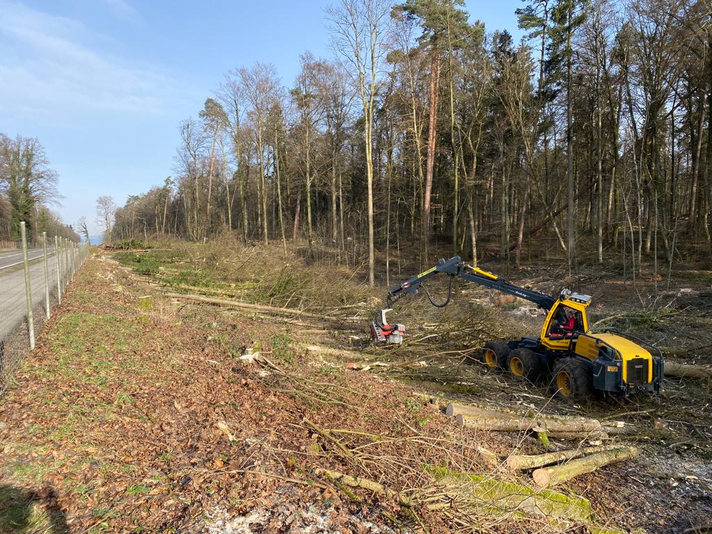 Im Rahmen des Straßenprojektes Bülach/Glattfelden führten wir, der Hardwald-Route entlang, eine Rodung durch.